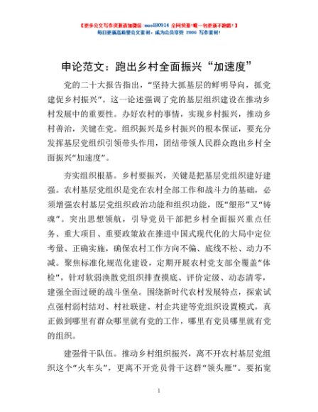 / 申论范文:跑出乡村全面振兴“加速度”