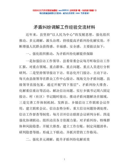 / 矛盾纠纷调解工作经验交流材料