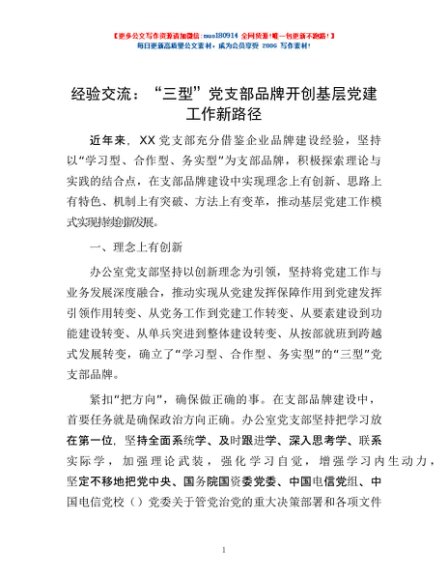 / 经验交流:“三型”党支部品牌开创基层党建工作新路径