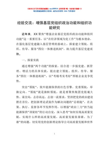 / 经验交流:增强基层党组织政治功能和组织功能研究