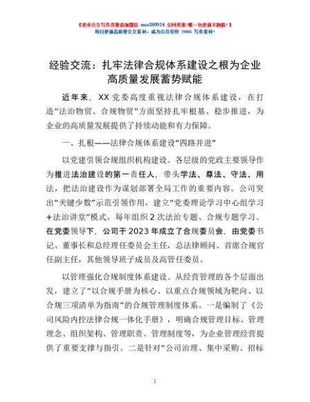 / 经验交流:扎牢法律合规体系建设之根 为企业高质量发展蓄势赋能