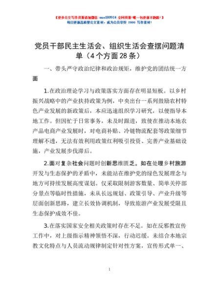 / 党员干部民主生活会、组织生活会查摆问题清单(4个方面28条)