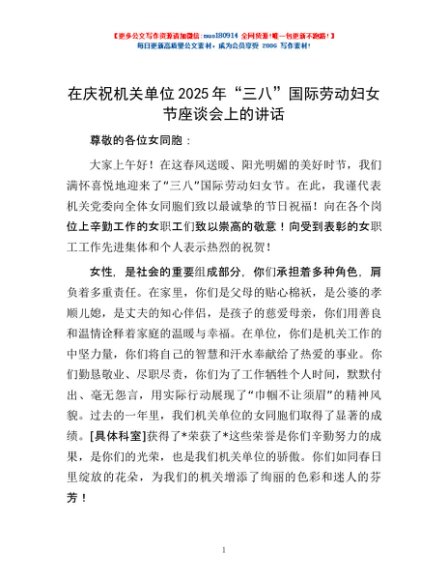 / 在庆祝机关单位 2025 年“三八”国际劳动妇女节座谈会上的讲话