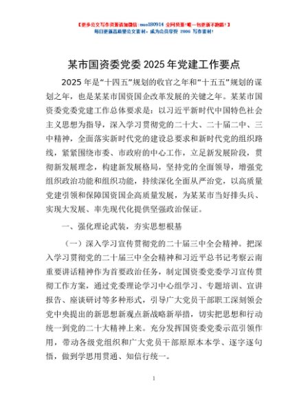 / 某市国资委党委2025年党建工作要点