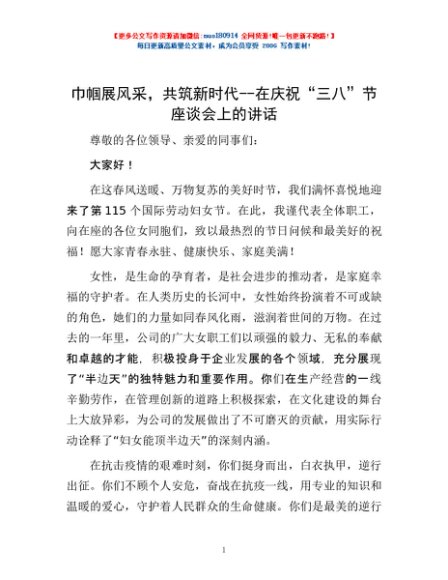 / 巾帼展风采,共筑新时代--在庆祝“三八”节座谈会上的讲话