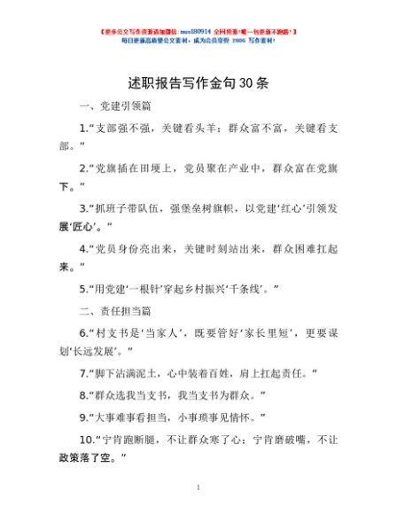 / 述职报告写作金句30条