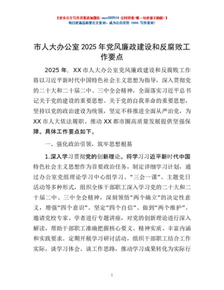 / 市人大办公室2025年党风廉政建设和反腐败工作要点