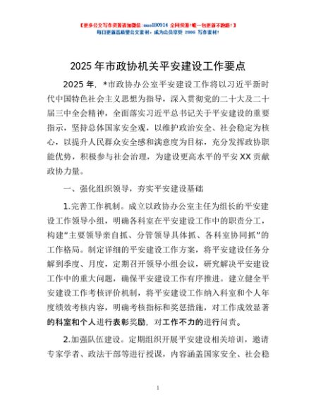 / 2025年市政协机关平安建设工作要点