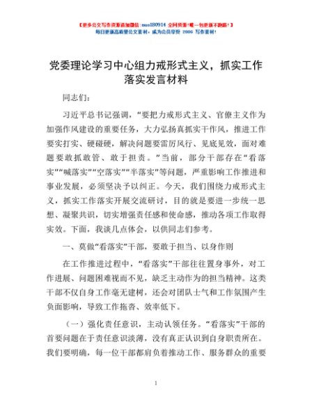 / 党委理论学习中心组力戒形式主义,抓实工作落实发言材料