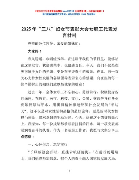 / 2025年“三八”妇女节表彰大会女职工代表发言材料