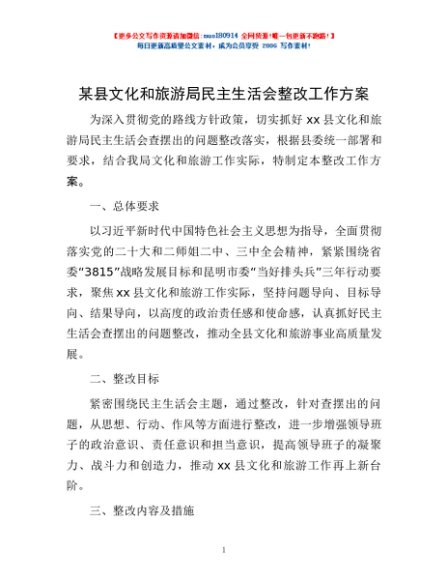 / 某县文化和旅游局民主生活会整改工作方案