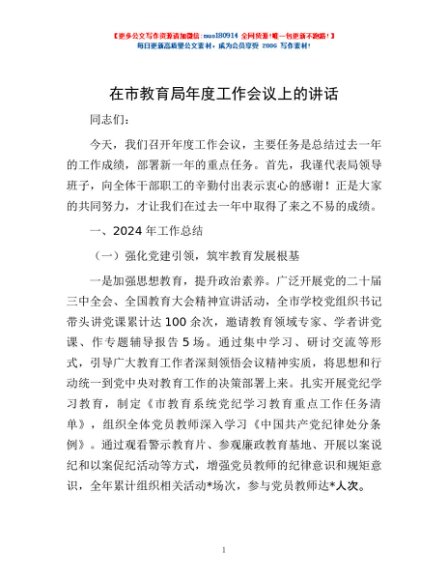/ 在市教育局年度工作会议上的讲话