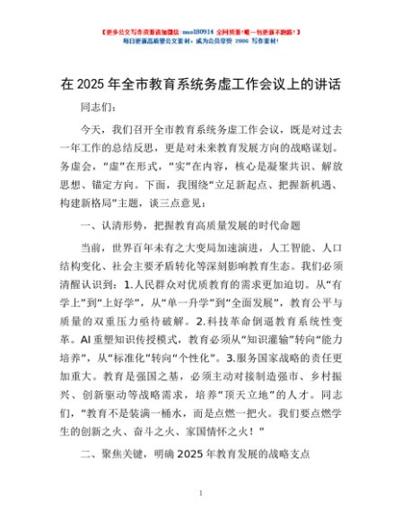 / 在2025年全市教育系统务虚工作会议上的讲话