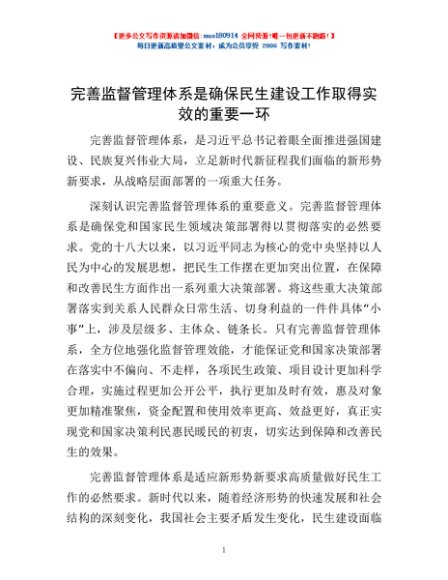 / 完善监督管理体系是确保民生建设工作取得实效的重要一环