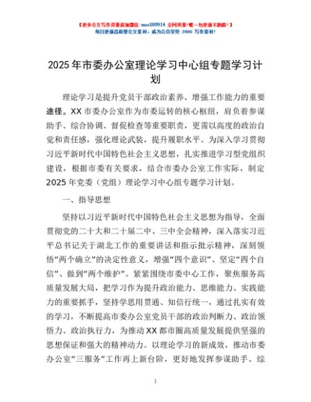 / 2025年市委办公室理论学习中心组专题学习计划