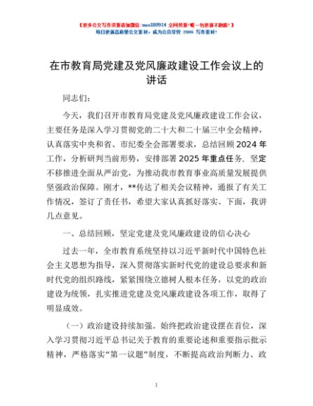 / 在市教育局党建及党风廉政建设工作会议上的讲话