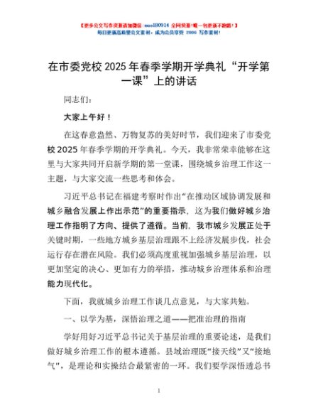 / 在市委党校2025年春季学期开学典礼“开学第一课”上的讲话