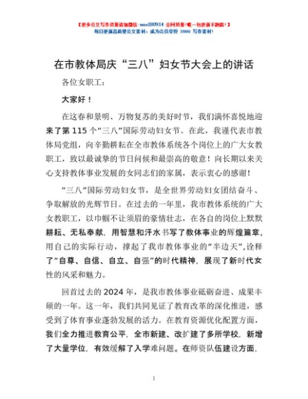 / 在市教体局庆“三八”妇女节大会上的讲话