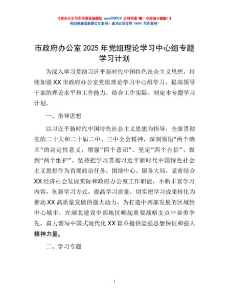 / 市政府办公室2025年党组理论学习中心组专题学习计划