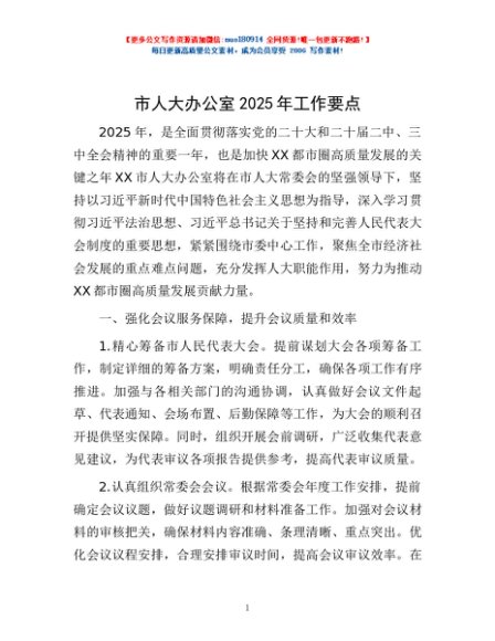 / 市人大办公室2025年工作要点