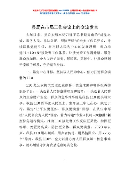 / 县局在市局工作会议上的交流发言