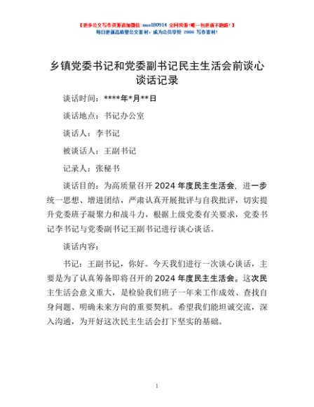 / 乡镇党委书记和党委副书记民主生活会前谈心谈话记录