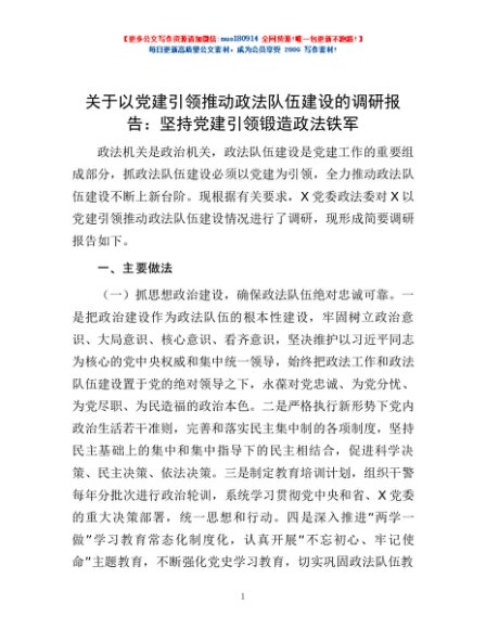 / 关于以党建引领推动政法队伍建设的调研报告:坚持党建引领锻造政法铁军