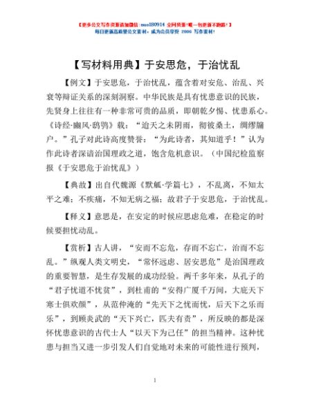/ 【写材料用典】于安思危,于治忧乱