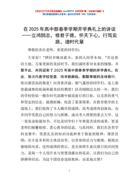 / 在2025年高中部春季学期开学典礼上的讲话——立鸿鹄志,修君子德,怀天下心,行笃实路,谱时代章