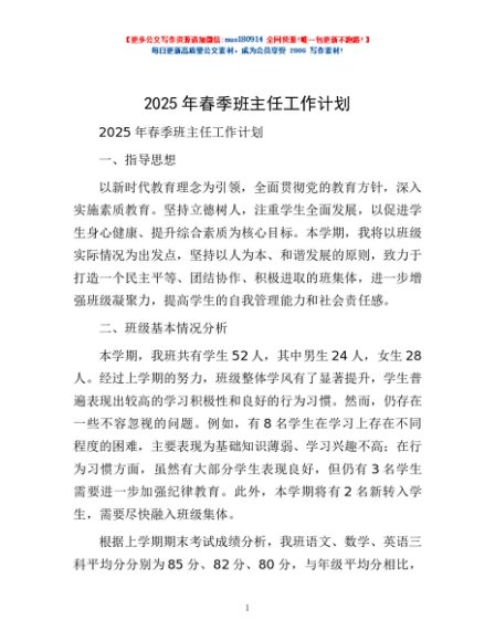 / 2025年春季班主任工作计划