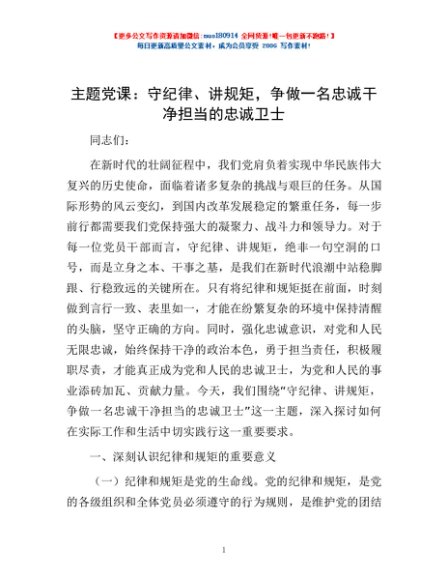 / 主题党课:守纪律、讲规矩,争做一名忠诚干净担当的忠诚卫士
