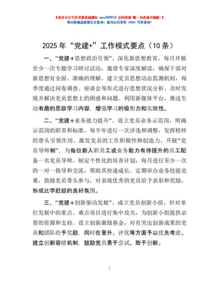 2025 年“党建+”工作模式要点(10条)