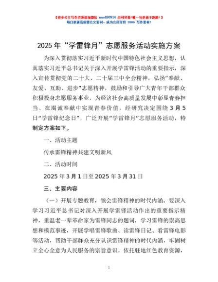 / 2025年“学雷锋月”志愿服务活动实施方案