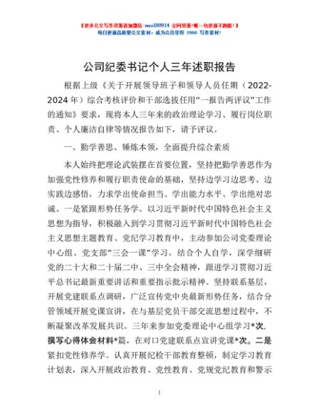 / 公司纪委书记个人三年述职报告