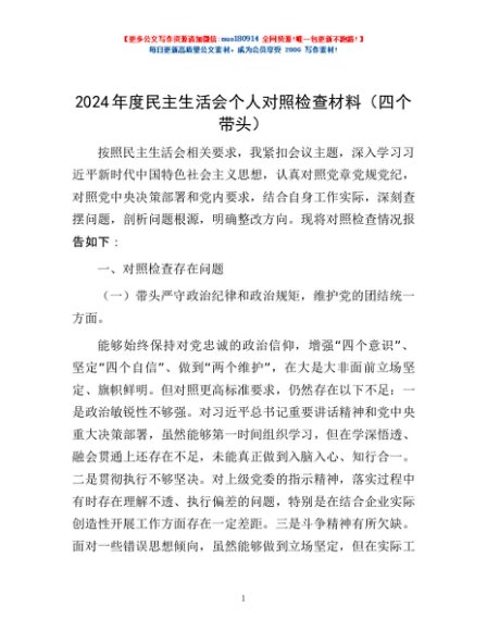/ 2024年度民主生活会个人对照检查材料(四个带头)