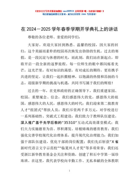 / 在2024-2025学年春季学期开学典礼上的讲话