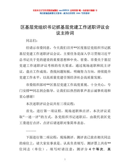 / 区基层党组织书记抓基层党建工作述职评议会议主持词
