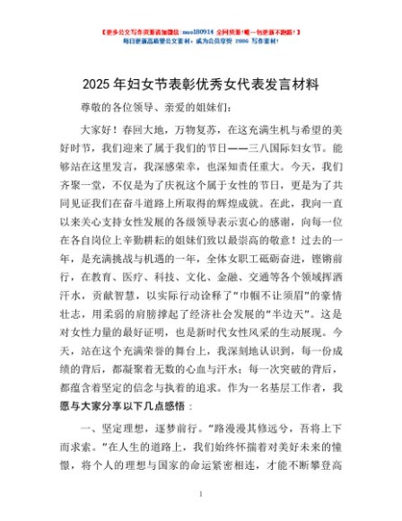 / 2025年妇女节表彰优秀女代表发言材料