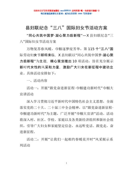 / 县妇联纪念“三八”国际妇女节活动方案