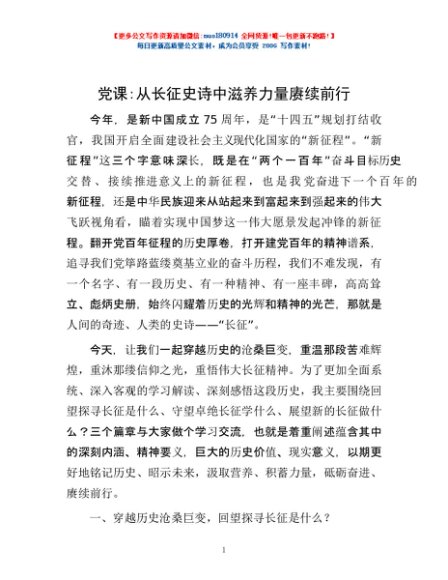 党课:从长征史诗中滋养力量赓续前行