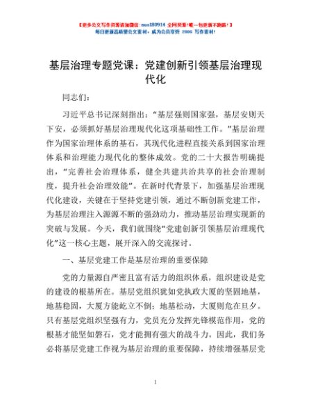 / 基层治理专题党课:党建创新引领基层治理现代化
