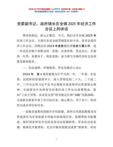/ 党委副书记、政府镇长在全镇2025年经济工作会议上的讲话