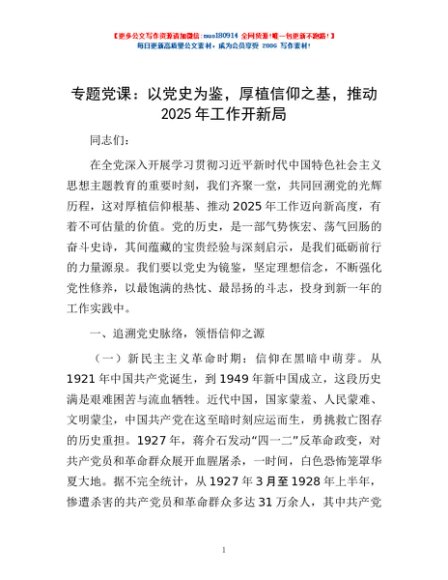 / 专题党课:以党史为鉴,厚植信仰之基,推动2025年工作开新局