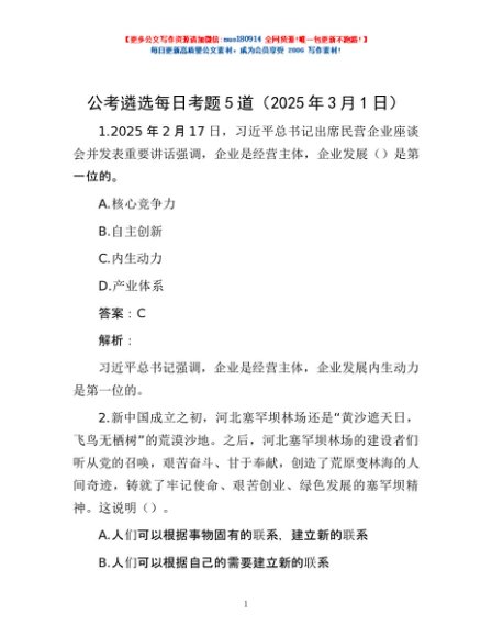 / 公考遴选每日考题5道(2025年3月1日)
