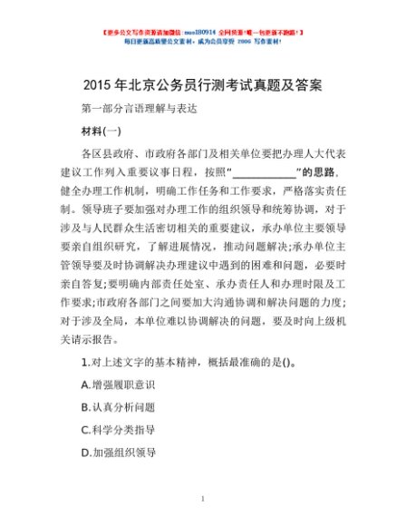 2015年北京公务员行测考试真题及答案