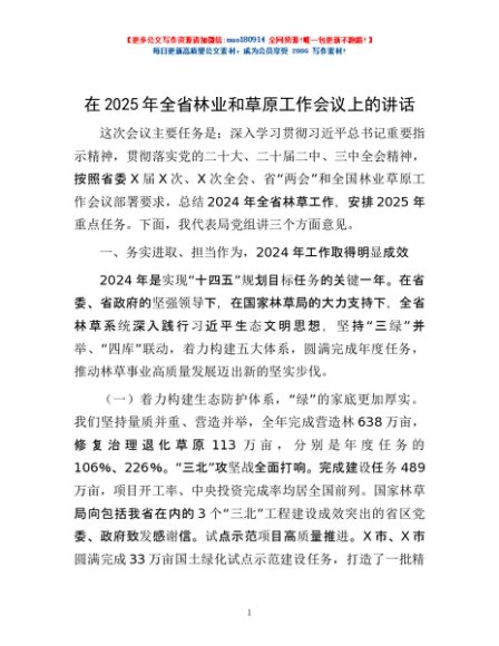 / 在2025年全省林业和草原工作会议上的讲话