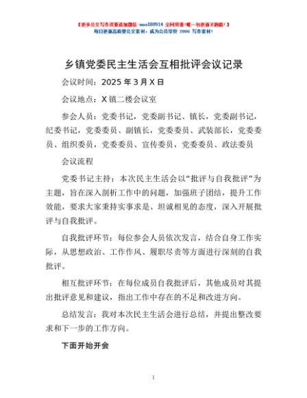 / 乡镇党委民主生活会互相批评会议记录