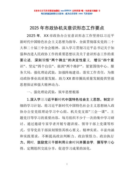 / 2025年市政协机关意识形态工作要点