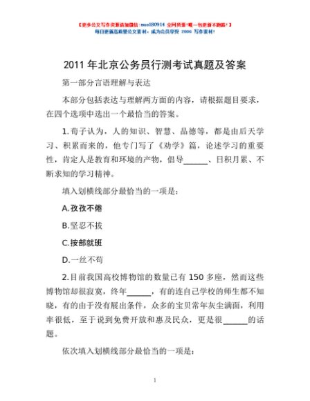 2011年北京公务员行测考试真题及答案