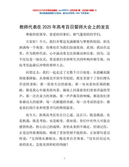 / 教师代表在2025年高考百日誓师大会上的发言